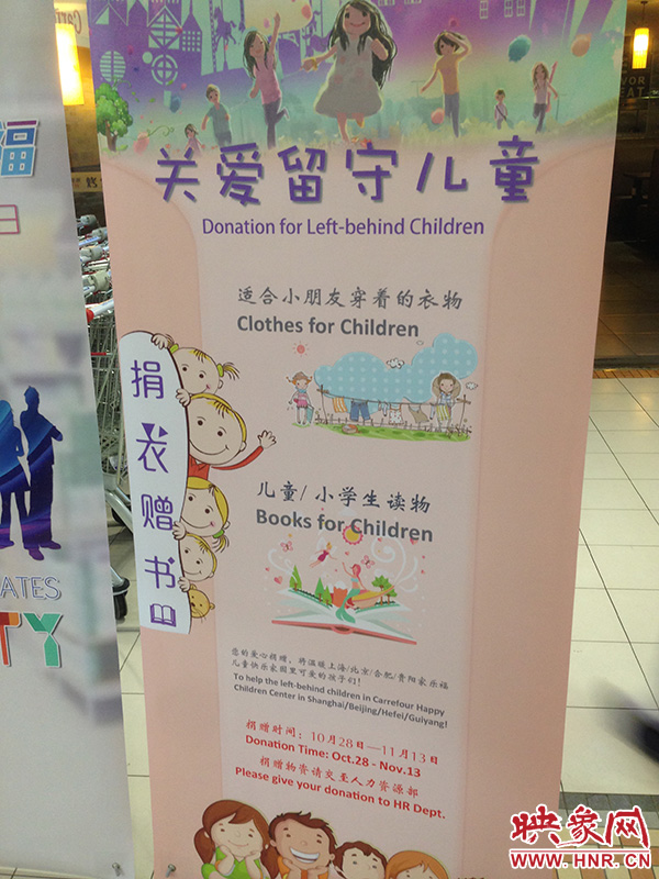 目前,我國(guó)有留守兒童逾6000萬(wàn),占中國(guó)所有兒童總數(shù)的30%,留守兒童的身心健康是整個(gè)社會(huì)都亟需關(guān)注的問(wèn)題。家樂(lè)福持續(xù)關(guān)注和參與公益項(xiàng)目“兒童快樂(lè)家園”,讓更多的留守兒童感受到童年的快樂(lè)。今天鄭州家樂(lè)福金水店啟動(dòng)的“關(guān)愛(ài)留守兒童”捐衣贈(zèng)書活動(dòng)所籌的書籍及衣物,將直接送到上海、北京、合肥、貴陽(yáng)家樂(lè)福兒童快樂(lè)家園里的孩子們手中。