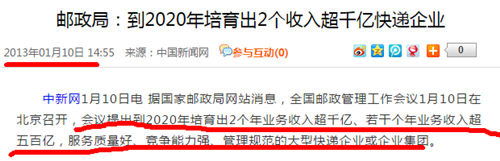 此前行業(yè)內主要用全網收入做比較,包括所有有關公開報道。2012年國家為整個行業(yè)制定了整體發(fā)展規(guī)劃,提出2020年前打造2個年收入超千億的快遞航母。這里指的都是全網收入。