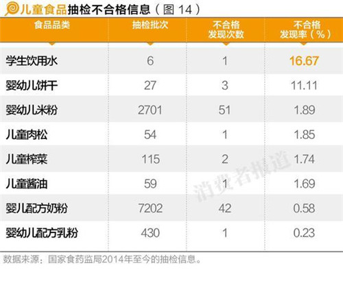 《消費(fèi)者報道》通過梳理國家食藥監(jiān)局2014年以來的12551條兒童食品抽檢數(shù)據(jù)發(fā)現(xiàn),兒童食品的合格率較高,達(dá)99%,而不合格品牌也是較為小眾品牌。本刊提醒消費(fèi)者謹(jǐn)慎購買奶粉不合格次數(shù)較多的幾個品牌,如雅因樂、冠爾優(yōu)等。