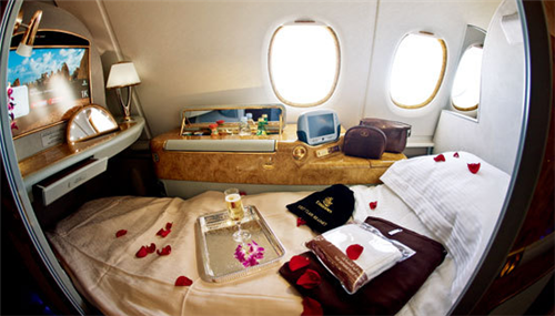 僅僅讓機艙變得高科技還不夠。一些航空公司的機艙也朝酒店化的方向設(shè)計,阿迪哈德航空就推出了第一個空中包房,12平方米的空間內(nèi)包括獨立的客廳、衛(wèi)生間和擁有雙人床的臥室,以及專屬的廚師和管家。
