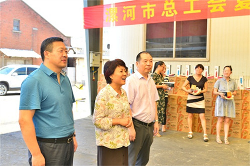 7月24日上午,烈日當頭,漯河市總工會黨組書記、常務副主席吳花蕾,市總工會副主席張煒一行在雙匯集團工會主席劉清德陪同下來到雙匯儲運公司慰問一線員工,為他們送去了飲水杯、毛巾、白糖、葡萄糖飲料等防暑用品,炎炎夏日里給廣大員工送去絲絲清涼。