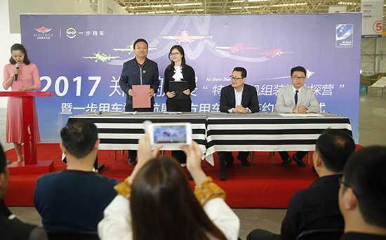 在當天活動現(xiàn)場,還舉行了一步用車鄭州航展官方用車平臺簽約交付儀式。一步用車向2017鄭州航展執(zhí)委會免費提供50輛“小黃車”作為通勤用車,航展執(zhí)委會日常辦公、駕駛員和機場工作人員日常通勤,安保及警察周邊巡邏均使用這些“小黃車”。