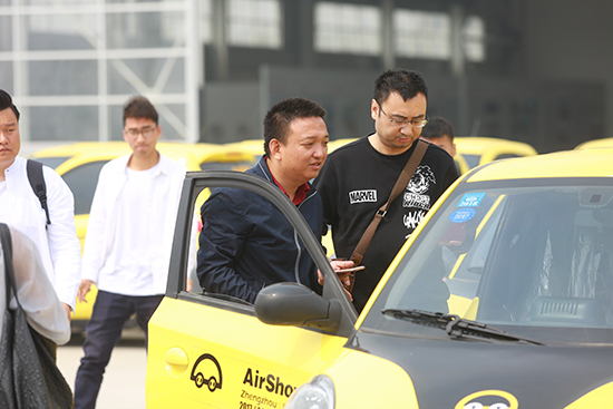 “小黃車”擺放成飛機形狀,屹立在航空園區(qū)內(nèi),甚為壯觀。吸引了多家媒體記者紛紛試駕試駕,記者們試駕之后,對其贊不絕口。