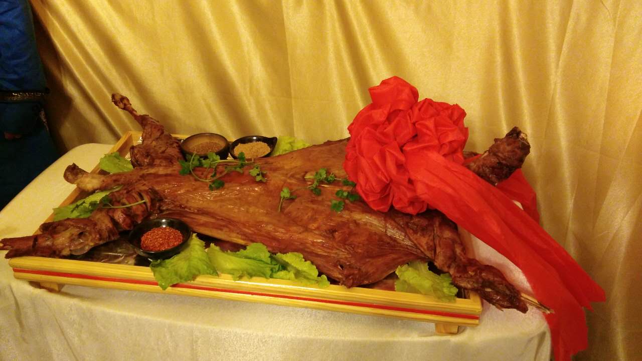 只一道烤全羊,酒店大廚都頗費工夫。食材精選肉質(zhì)鮮嫩的鮮羊,肉質(zhì)均勻。因為對“原汁原味”的極致追求,整只羊需提前三個小時炭火慢慢烤制。烤全羊上席后,色澤金黃,表皮脆嫩,鮮香襲人,令人垂涎欲滴。此時,酒店工作人員會為當晚最尊貴的客人獻上哈達,并邀請客人一起舉行“開羊儀式”,在蒙古,這象征主人對朋友最誠摯的祝福。