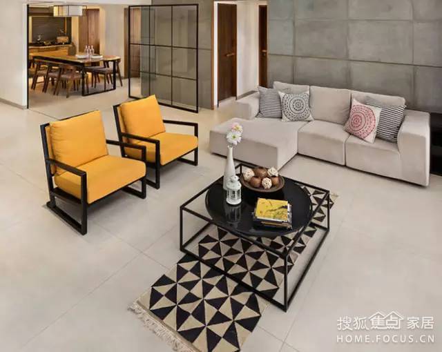 沒有了電視的束縛,客廳擺放沙發(fā)可以更加靈活了。三人座、雙人座、單人座,以及不同樣式的沙發(fā)靈活搭配起來(lái)。