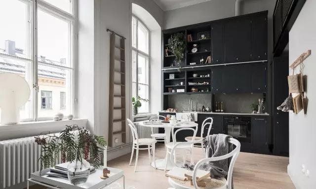 挑高天花板,具有質(zhì)感的涂料,這所優(yōu)雅的黑白公復(fù)式寓,經(jīng)過改造后巧妙地運用色彩及各種細(xì)節(jié)裝飾,將北歐的簡約與新古典風(fēng)格進(jìn)行了全新的詮釋。