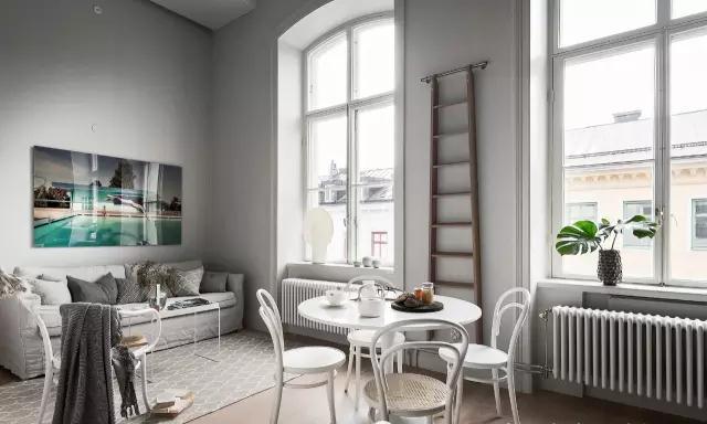白色的餐桌有夠成用餐區(qū)域,窗外優(yōu)美的街景是最好的裝飾。用餐空間充滿北歐風(fēng)格的簡約美,餐椅優(yōu)美的曲線柔化了空間。