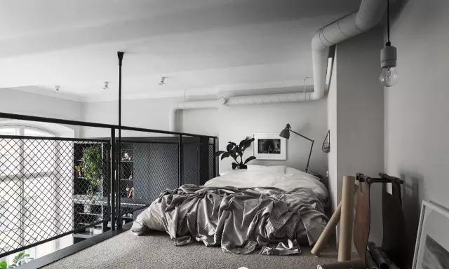 二樓就的空間直接作為私人臥室,空間內(nèi)首先安排好大件家具,小物件的選擇和擺放給屋主更多的發(fā)揮。灰色調(diào)臥室給人營造出放松和舒適的氣氛。