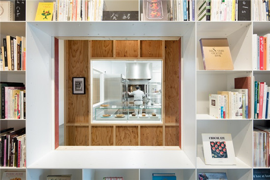 原文來(lái)源:http://www.designboom.com/architecture/schemata-hue-library-cake-shop-kitchen-tokyo-05-23-2016/