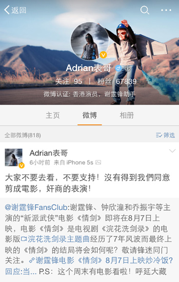 謝霆鋒助手怒斥《情劍》