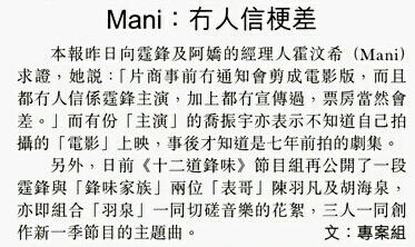 港媒采訪阿嬌經(jīng)紀(jì)人霍汶希有關(guān)《情劍》的報(bào)道