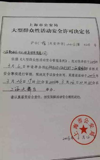 而據網友曝光的主辦方向上海市公安局提交的申報材料所示,演唱會應晚上十點半才結束,而當天的演出不到九點就已落下帷幕。除此之外,還有粉絲爆料稱主辦方詐騙粉絲的應援物資數萬元,甚至還有現場保安毆打粉絲的情況。