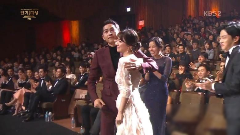 2016年KBS演技大賞最重要大獎(jiǎng)由《太陽(yáng)的后裔》宋仲基和宋慧喬獲得,兩人一上臺(tái)皆難掩激動(dòng)情緒,忍不住哽咽。宋慧喬對(duì)于獲得“最佳CP獎(jiǎng)”發(fā)表感言,“和喜歡的人一起領(lǐng)獎(jiǎng),真的很開(kāi)心”,在主持人全炫茂的詢(xún)問(wèn)之下,滔滔不絕地稱(chēng)贊宋仲基就和劇中的劉時(shí)鎮(zhèn)一樣,“幽默、聰明、真誠(chéng)又溫柔”,宋仲基則回贊對(duì)方,“真的非常美麗又大方”,他們更現(xiàn)場(chǎng)重現(xiàn)了“什么血型”的撒嬌,彼此溺愛(ài)的眼神超吸睛。