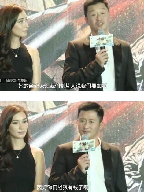 吳京說,我們《戰(zhàn)狼》是有錢,但是我們的錢都花在武器裝備和取景上,花在后期制作上面,演員我們只選對(duì)的不選貴的,你們要求我們不能答應(yīng)。結(jié)果原來選定的女主角就沒來,后來盧靖姍就成為了片中的女主角。