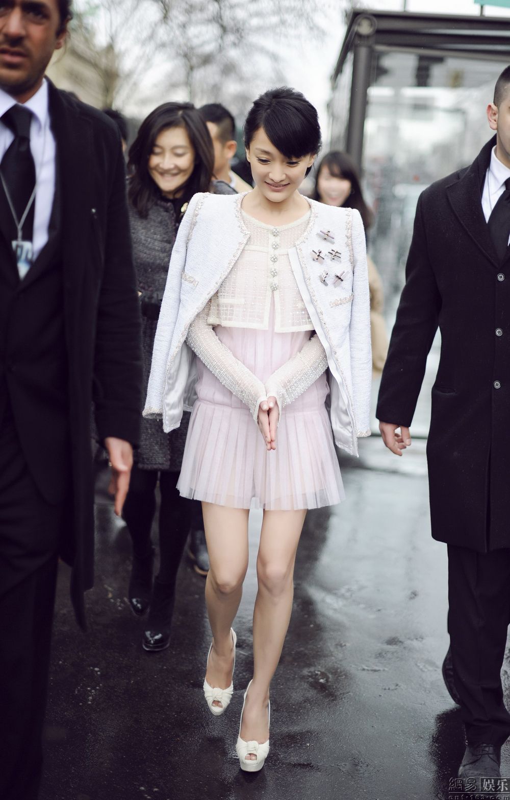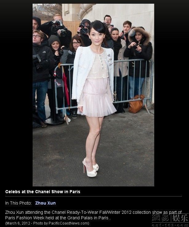 網(wǎng)易娛樂3月12日報道(文/小易) 日前,堪稱全球時尚潮流風(fēng)向標的巴黎時裝周已經(jīng)正式落下帷幕。但盛典結(jié)束,余溫猶在。近日,華裔女星周迅在時裝周上的一張疑似夢露走光照在網(wǎng)絡(luò)上瘋傳。照片中,周迅身著香奈兒頂級手工定制服飾,珍珠薄紗短外套搭配短裙的清新造型讓人眼前一亮。其中,微風(fēng)掃過,周迅的裙擺飛揚,而她輕輕用手撫住裙擺并擺出搞怪神情堪稱神來之筆。