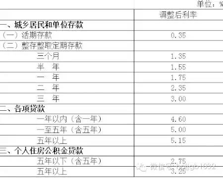 金融機構人民幣存貸款基準利率調(diào)整表
