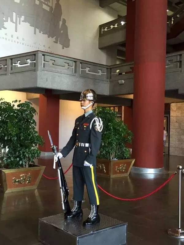 紀(jì)念堂內(nèi)衛(wèi)兵交接班儀式,成為一道風(fēng)景,他們每小時交接一次,站崗期間連眼睛都不能眨一下。