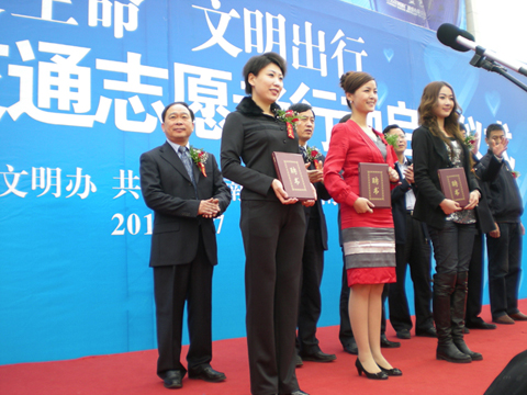 圖為: 河南省交通文明志愿者行動(dòng)啟動(dòng)儀式現(xiàn)場(chǎng)