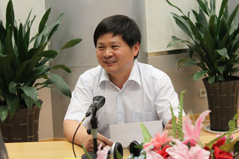 上圖為:鄭州市公交總公司黨委書記、總經(jīng)理巴振東做客河南交通廣播《1041會客廳》節(jié)目