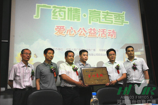 6月3號,河南電臺信息廣播聯(lián)合河南電視臺第九頻道、廣州白云山何濟公制藥廠,在鄭州大學(xué)共同舉辦了以“愛心助高考 迎接新人生”為主題的“廣藥情 高考季”系列愛心公益活動。