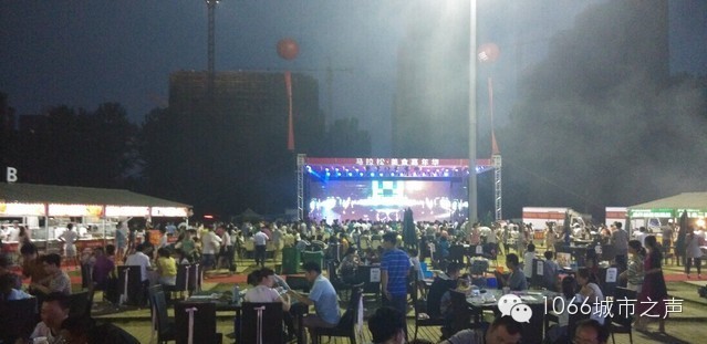 中原美食嘉年華的開幕標志著集美食、運動、娛樂等元素的品牌夜市正式投入運營??墒沁@里不僅僅是吃飯的地兒,你看那邊幾桌的白領,白色襯衫都沒來得及脫下就已經(jīng)搶先坐下(請注意,他們是扭著頭看完舞臺表演的,沒起身,沒起身?。跋掳嗪?,跟同事來這兒說說話,放松下挺好的?!逼渲幸晃粠浶』镬t腆的說到。