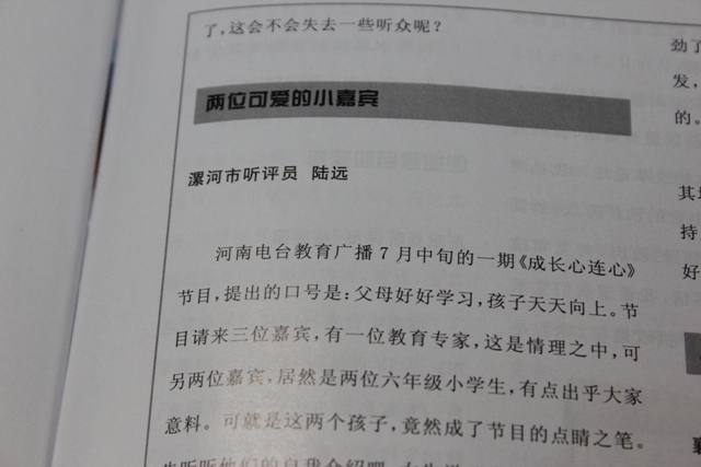 這期談教育的節(jié)目之所以吸引人,兩位小學(xué)生增色不少。聽(tīng)了這期節(jié)目,大家還能感覺(jué)出來(lái),女主持人雖然年輕,卻非常用心,非常給力,非常真誠(chéng),對(duì)辦好節(jié)目,實(shí)在是功不可沒(méi)。