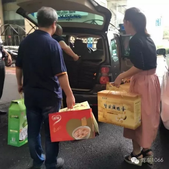 2016年7月31日早上6點,河南電臺FM106.6《二姐駕到》欄目組的二姐們在當(dāng)?shù)刂驹刚叩呐阃?,準備探訪抗戰(zhàn)老兵的物資。