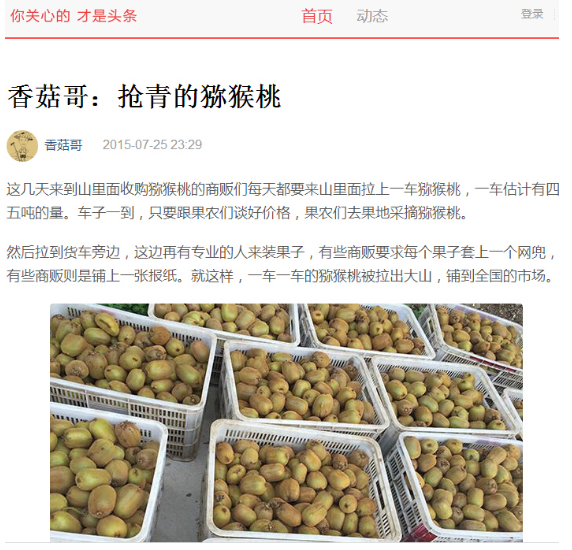 通過這些文章的傳播,我認(rèn)識到了很多的朋友,這些朋友也給我提供了很多的幫助,通過他們我開拓了視野,對獼猴桃有了更加深刻的了解。這些幫助都來自于這些文章的宣傳。雖然有時候晚上熬夜到凌晨的兩三點(diǎn),但是我覺得正是這份辛苦,讓我更加體會到創(chuàng)業(yè)帶來的精神上的收獲。