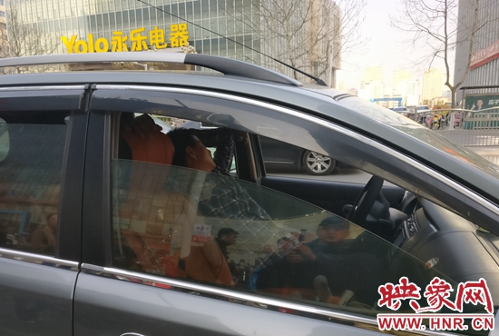 記者根據(jù)楊華民手指的方向看去,國貿(mào)360商場門前的花園路上,停車等人的機(jī)動車排起了長龍。記者與民警走到一輛車牌號為豫A559B8的機(jī)動車前看到,司機(jī)正在座位上睡覺,而其車輛則是停在了路中間的位置,嚴(yán)重影響了道路的暢通。