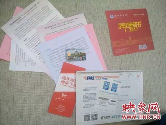 省內(nèi)部分高校寄出的錄取通知書內(nèi)均附有銀行卡