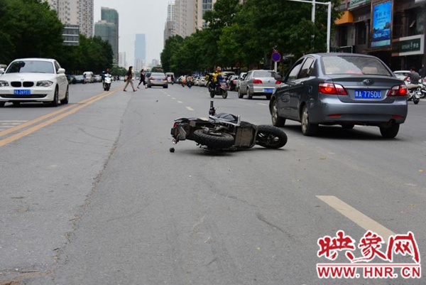 9月5日中午,鄭州市福元路上,一名初中男生騎電動(dòng)車送女同學(xué)回家。當(dāng)其由西向東行駛至福元路與鳳臺(tái)路交叉口時(shí),疑與一輛在路口左拐的出租車發(fā)生碰撞。電動(dòng)車失控倒下,女生從后座重重倒地,頭部、臉部受傷,全身抽搐,昏迷不醒。