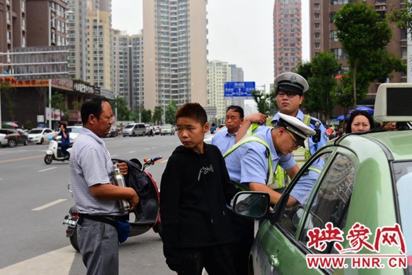 映象網(wǎng)快訊(記者 邱延波 文/圖)9月5日中午12時(shí)許,鄭州市福元路上,一輛電動(dòng)車疑與出租車發(fā)生碰撞,電動(dòng)車上的15歲女生倒地后昏迷不醒。隨后,出租車離開(kāi)現(xiàn)場(chǎng),熱心市民騎電動(dòng)車狂追涉嫌肇事的出租車并將其攔下。