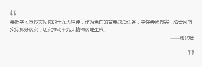 10月29日,省委書記、省人大常委會主任謝伏瞻到蘭考縣,宣講黨的十九大精神并就學(xué)習(xí)宣傳貫徹提出要求。