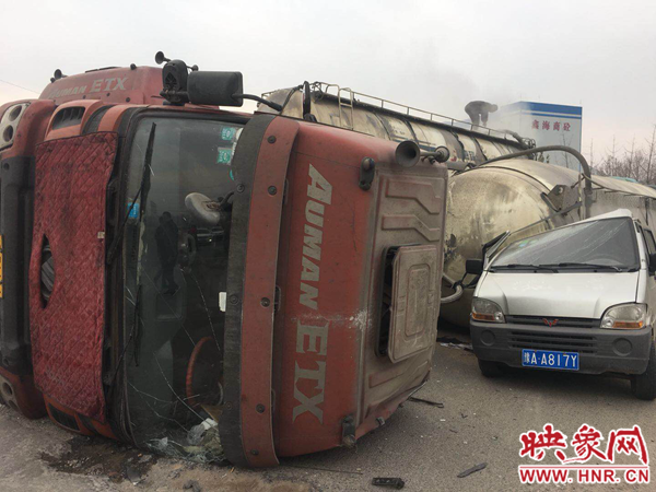 據(jù)了解,槽罐車司機姓李,身上有三處輕微骨折,正在醫(yī)院接受治療。