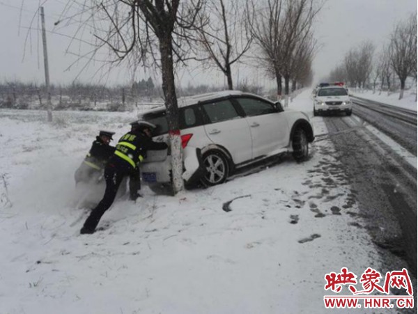登封交警大隊(duì)從1月3日晚上開(kāi)始,就組織警力百余人在路面上不間斷巡邏,救助拖移壞車(chē)9輛。