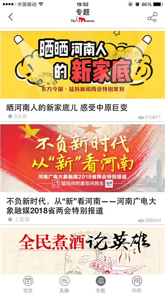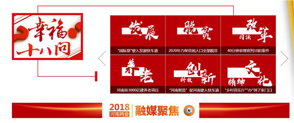 映象網(wǎng)訊(記者 秦雯)看兩會最熱最新鮮,看百姓關(guān)注,看代表委員風(fēng)采,看各界如何解讀報告。1月22日起,河南進(jìn)入2018兩會時間。大象融媒帶著問題聚焦兩會,帶著答案回應(yīng)網(wǎng)民。其間,大象融媒旗下所屬各媒體大顯身手,貢獻(xiàn)出大量精彩的報道,直播、高清圖、系列策劃及H5產(chǎn)品等,這些內(nèi)容一經(jīng)推送,就吸引百姓高度關(guān)注,有些板塊更是形成“兩會熱門話題”和“網(wǎng)絡(luò)熱詞”,被網(wǎng)友分享,引代表委員熱議。