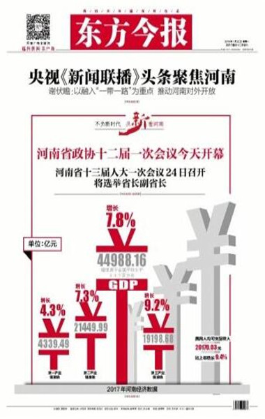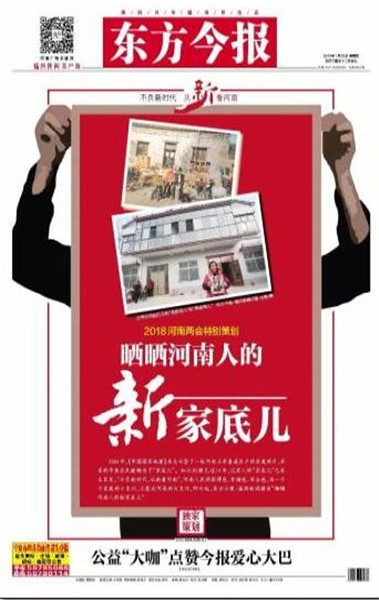 同時,東方今報還推出2018河南兩會特別策劃——“幸福都是奮斗出來的”,側(cè)重報道正在奮斗且勵志的社會中堅力量,一個個鮮活的人物故事勉勵我們,為中原更加出彩而努力奮斗。截至目前已刊登四篇報道,分別是《幸福是奮斗出來的系列報道之(1) 河南妞兩次為“彭媽媽”表演 特邀列席縣政協(xié)會議》《幸福是奮斗出來的系列報道之(2) 90后辭年薪二十萬工作創(chuàng)業(yè):我的心愿是“藝術(shù)+”》《幸福是奮斗出來的系列報道之(3) “海歸農(nóng)夫”師鵬飛:現(xiàn)代農(nóng)場放飛創(chuàng)業(yè)夢》。