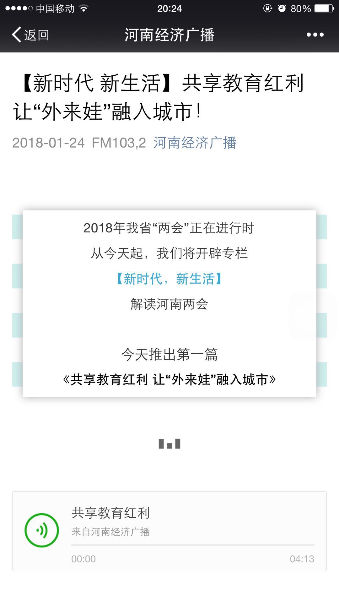 河南經(jīng)濟(jì)廣播微信端在推送該組錄音報道時,全部用圖文、視頻、音頻多樣式配合展現(xiàn),使閱讀更生動有趣,更直觀,是名副其實的“融新聞”,受眾紛紛在微信后臺留言。共收到500余條留言,轉(zhuǎn)發(fā)量達(dá)到一百余次。