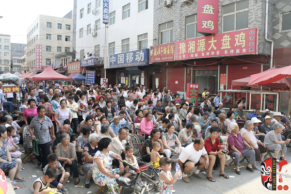 本次活動是在河南進行的首場活動,當天非常炎熱,但是大家看戲的熱情絲毫沒有減弱。街道里擠滿了前來看戲的居民,大家一邊鼓掌一邊揮動著扇子,別有一番風味。整個活動持續(xù)兩個半小時,隨著演出的進行,觀眾的熱情不斷高漲,人群中時而掌聲如雷,時而捧腹大笑?;顒咏Y束之后,觀眾依然不肯離場,當?shù)責崆榈膽蚯鷲酆谜呒娂娚吓_,繼續(xù)著自娛自樂的活動。