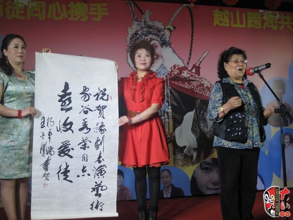 據(jù)了解,這是自1994年第一次收徒起,谷秀榮18年來最隆重的一次收徒儀式,66歲的她在收徒現(xiàn)場激動(dòng)不已,她說:“我今天不是在收徒,而是在交志同道合的好友?!彼硎編熗絺円獢y手為熱愛戲曲的人放聲歌唱。