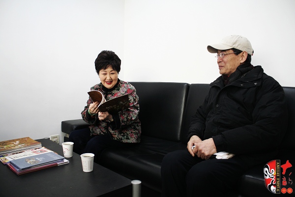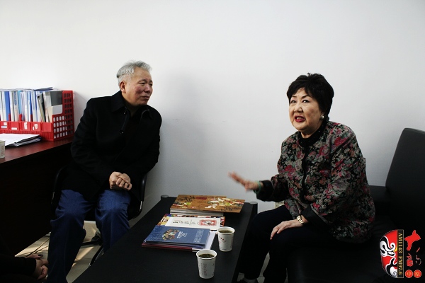 河南人民廣播電臺(tái)副臺(tái)長(zhǎng)翟國(guó)選(左)親自接見京劇荀派傳人孫毓敏(右)