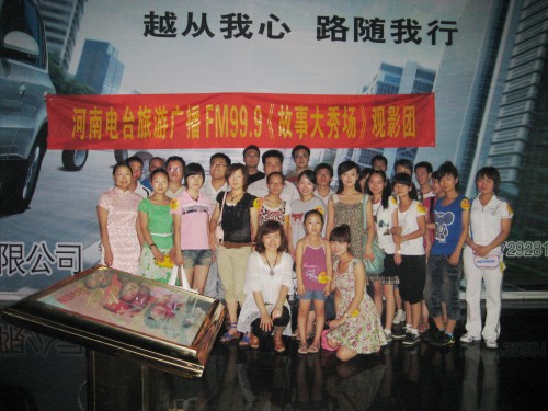 由河南電臺(tái)旅游廣播《故事大秀場(chǎng)》組織的《無人駕駛》觀影團(tuán)合影
