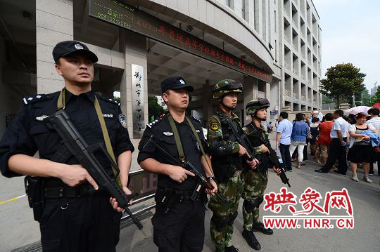 鄭州警方根據(jù)全市考區(qū)的實際情況進行了警力部署:市內(nèi)每個考點安排轄區(qū)派出所民警6名、交巡警6名、特警4名;上街、中牟、滎陽、新鄭、新密、登封每個考點安排執(zhí)勤民警16名,其中:派出所民警6名、交警6名、特警4名。為全力服務(wù)考生,鄭州警方要求各單位執(zhí)勤民警在開考前1個小時到達指定崗位,認真履行各項職責(zé),考試結(jié)束40分鐘后撤崗。對位于繁華路段、周邊治安復(fù)雜或交通擁堵路段的學(xué)校有針對性的增派警力,切實加強考點及周邊安全保衛(wèi)工作。