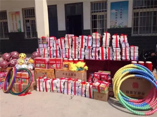 根據(jù)孩子們的現(xiàn)實需求和愿望,我們此次特別為孩子帶來了千本圖書以及腰鼓樂器、足球等體育用品,并捐獻給學校。