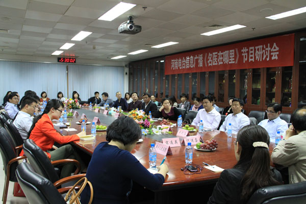 4月8日下午,我省首檔大型廣播公益醫(yī)療服務(wù)節(jié)目《名醫(yī)在哪里》節(jié)目研討會(huì)在廣播大廈16樓舉行。河南人民廣播電臺(tái)副臺(tái)長(zhǎng)李海軍、河南省衛(wèi)生廳新聞辦主任周勇、河南人民廣播電臺(tái)信息廣播總監(jiān)李金鋒等領(lǐng)導(dǎo)以及來(lái)自河南省人民醫(yī)院、鄭州大學(xué)第一附屬醫(yī)院等省內(nèi)各大醫(yī)院的專(zhuān)家、聽(tīng)眾代表、節(jié)目聽(tīng)評(píng)員代表三十多人參加了研討會(huì)。