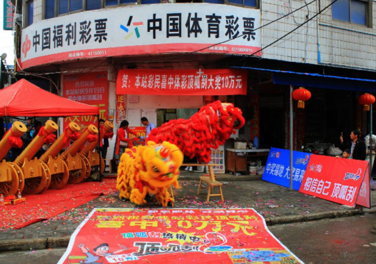 當(dāng)天下午,雖然下過小雨,但銷售網(wǎng)點(diǎn)門前仍然是人滿為患,好不熱鬧。聽說銷售點(diǎn)中了大獎,很多附近的彩民都來圍觀“中獎福地”,業(yè)主張女士還專門請來了兩組舞獅隊(duì)進(jìn)行即興表演,一時間現(xiàn)場氣氛達(dá)到頂點(diǎn),據(jù)張女士說,自從她的銷售站出了大獎,慕名而來“沾喜氣”的彩民很多,大家都是試試手氣隨手刮上一兩張頂呱刮彩票。