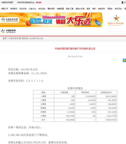 七星彩全國開出6注頭獎(jiǎng) 河南彩民照單全收