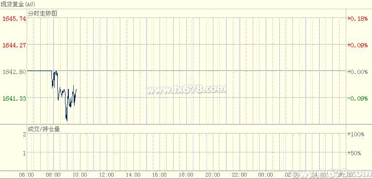 4月23日亞市盤中,現貨黃金于1640美元上方窄幅交投。北京時間9:40,國際現貨黃金報1641.45美元,下跌1.20美元,跌幅0.07%。