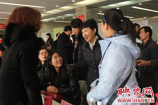 河南省婦聯(lián)副主席庫鳳霞與現(xiàn)場(chǎng)導(dǎo)師以及求職者交流