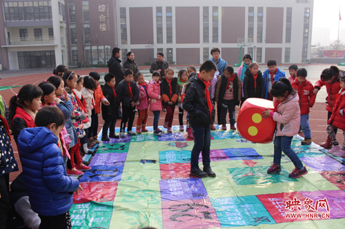 映象網(wǎng)教育頻道訊(記者 劉俊 通訊員 何利敏)“紅燈停,綠燈行,向前2步……”“阻止家人酒后駕車向前3步……”在鄭州市高新區(qū)五龍口小學(xué)的操場上,一場別開生面的“下棋”比賽正在進(jìn)行。在一張巨無霸“交通安全飛行棋”棋盤上,同學(xué)們扮作“棋子”,在棋盤上的小方格之間“穿梭”。一道道交通安全知識(shí)題目“攔”在“棋子”面前,答對(duì)問題方可繼續(xù)“前行”。